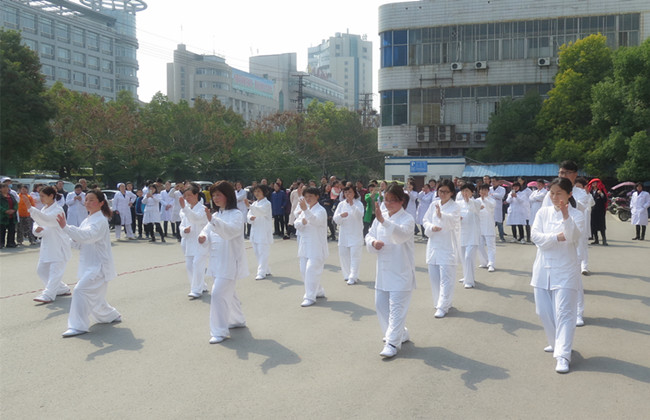 太极拳具有鲜明的中医学特征,太极功法与中国传统医学中的经络运行几乎完全一致,对人体有防病治病、延缓衰老的功能。为普及此项运动,从2017年2月起,我院特聘请了专业教练定期来院授课、培训,引导全院职工在繁忙医务工作之余,建立健康、合理的生活方式。不少职工学习热情高涨,更是自愿放弃休假,周末结对学习“补火”,在医院掀起了一阵“太极旋风”。