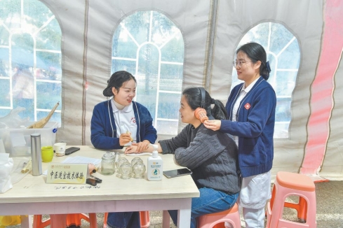 活动还精心设置多个互动体验区,广大市民在可看可感中沉浸式体验中医智慧。在中医适宜技术体验区,专业护理团队为广大市民提供耳穴埋豆、耳灸、艾灸等项目。不少市民还集赞兑换中药香囊,在中医药文化猜谜区学习中医药知识。